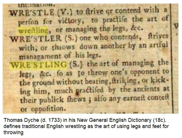 --- "The game of wrestling is also practiced among them (English), and some shorter man knows how to put a much taller and stronger man than him on the ground, by kicking his legs."---